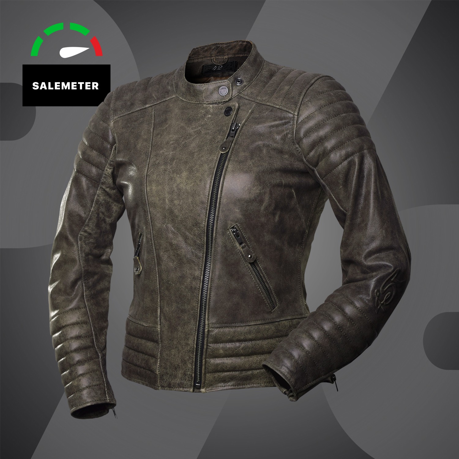 4SR Cool Lady Jacke mit luxuriösen goldenem Innenfutter, verfügt über ein einfaches, aber bemerkenswertes Design. Diese Steppjacke mit dezentem Logo und stilvollen Schulter und Ellenbogen-Patches, ist aus weichem Büffelleder gefertigt. Wenn Sie Retro und Custom Bikes lieben, werden sie die Cool Leder Jacke und ihren einfachen Stil lieben.