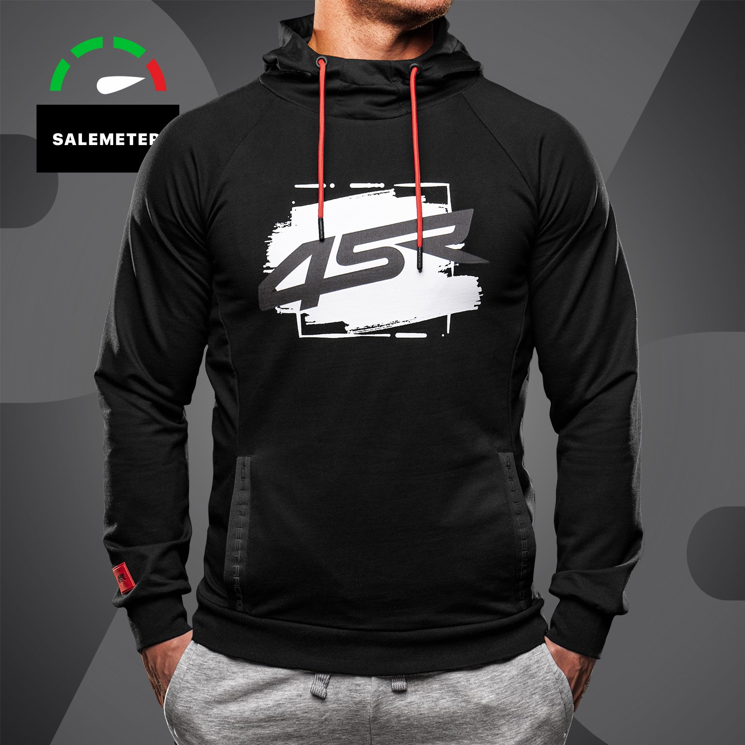 - eingesetzte Taschen mit schwarzem elastischem Besatz und 3D FOR STREET RACING-Schriftzug