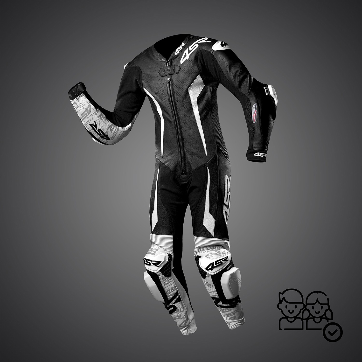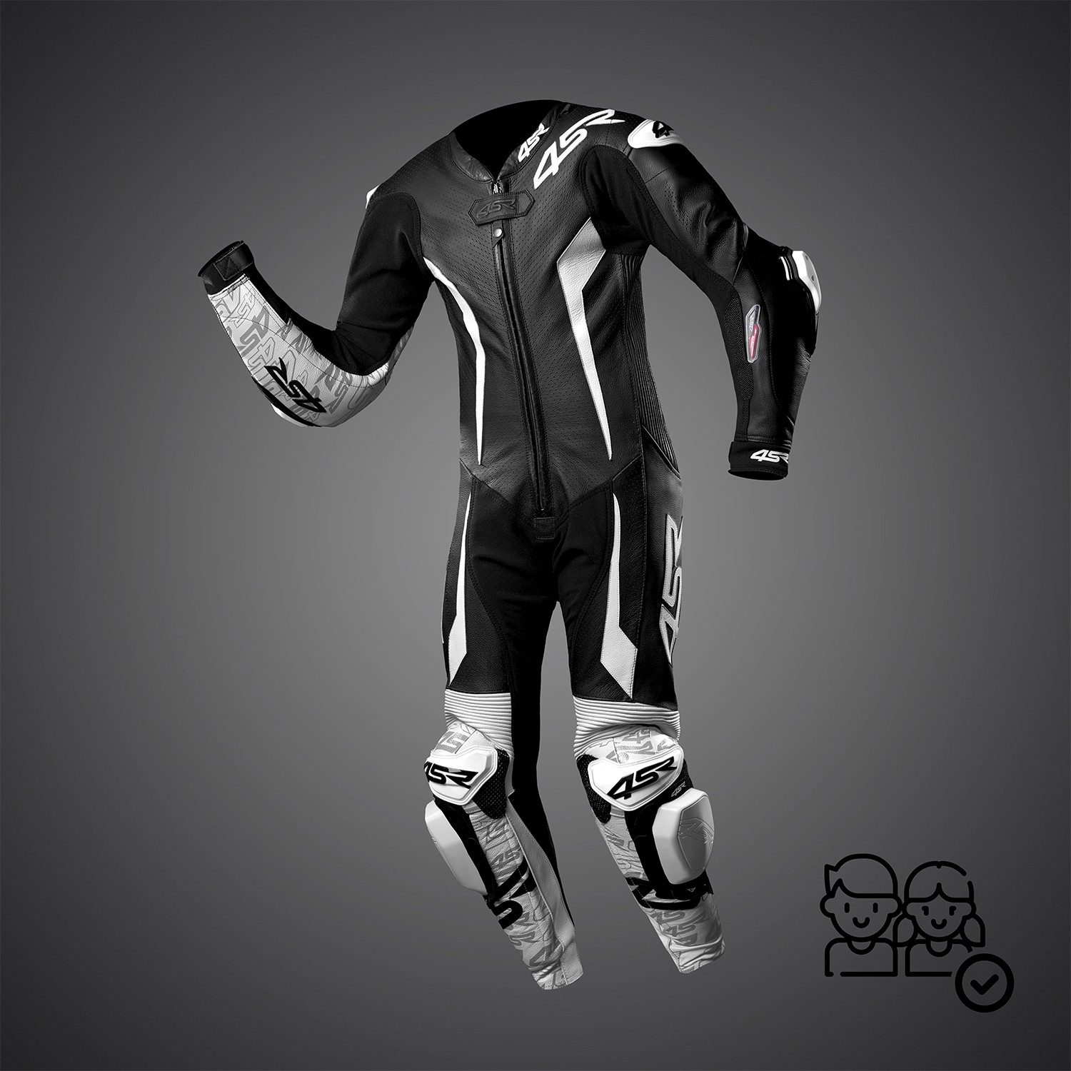 Mit der einteiligen 4SR Kinderkombi bist du innerhalb weniger Minuten bereit für die Rennstrecke. Wenn du die Kombi mit eigenen Lederlogos aufwerten möchtest, ist der 4SR BADGING SERVICE für dich da!