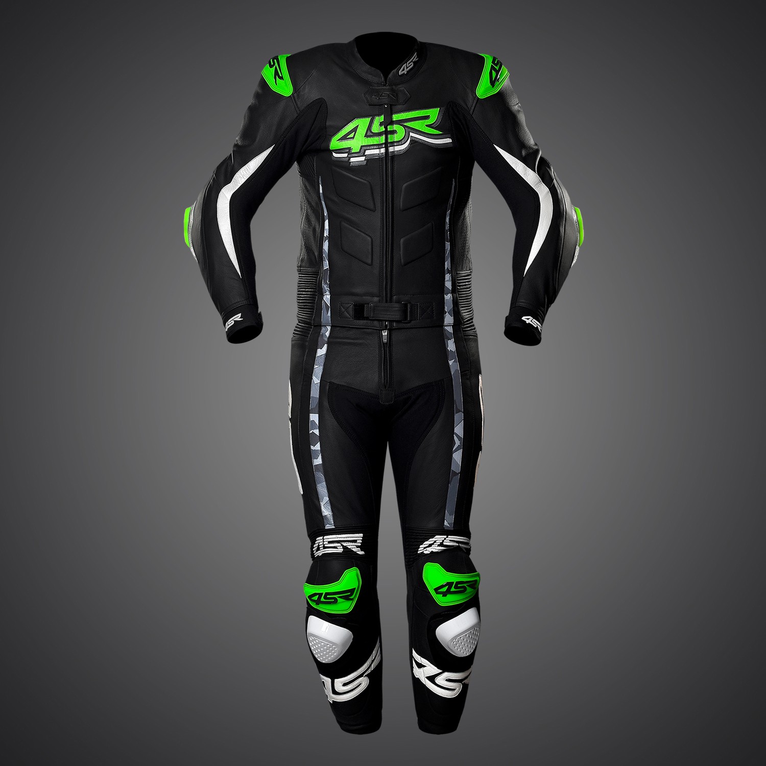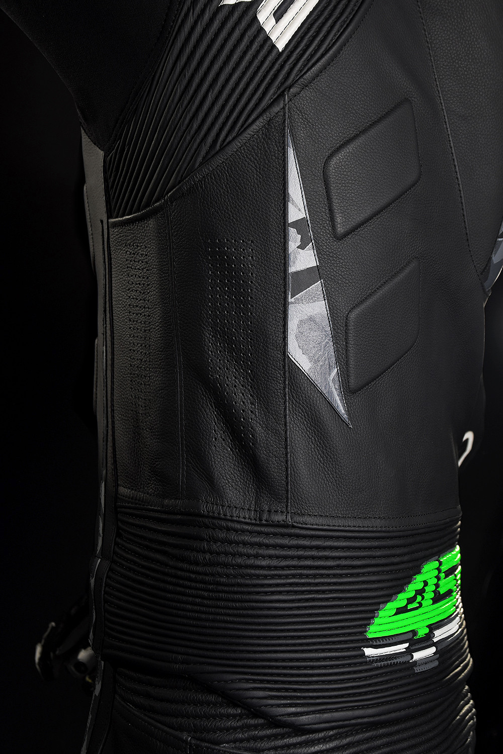 Der Zweiteiler RR Evo III Monster Green basiert auf der Rennkombis unserer Profi-Fahrer. Sie verwenden die gleichen Sicherheits- und Funktionselemente in ihren Zweiteilerkombis.