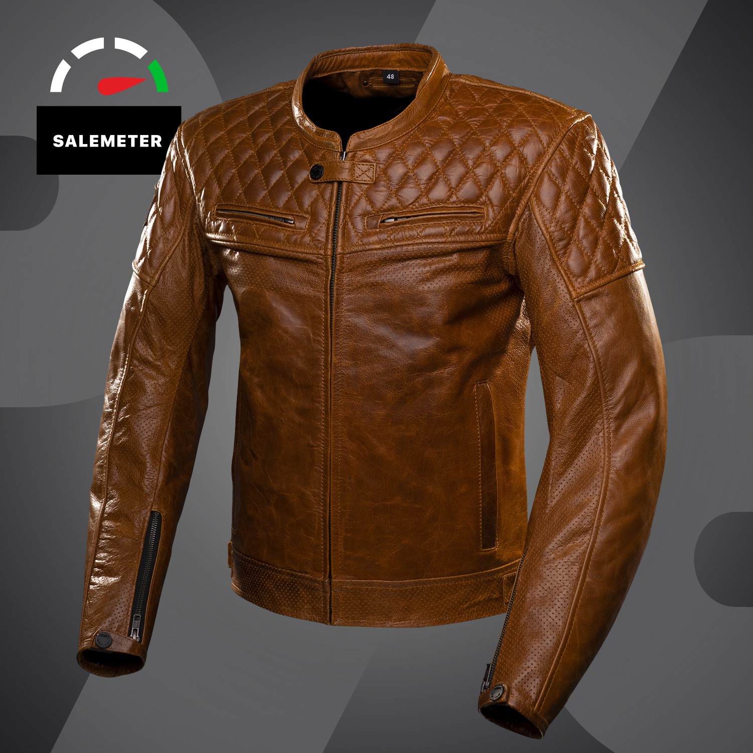 Eine luxuriöse und stilvolle Motorradjacke aus hochwertigem Büffelleder, das eine funkelnde braune Farbe hat, wie die besten Cognacs.