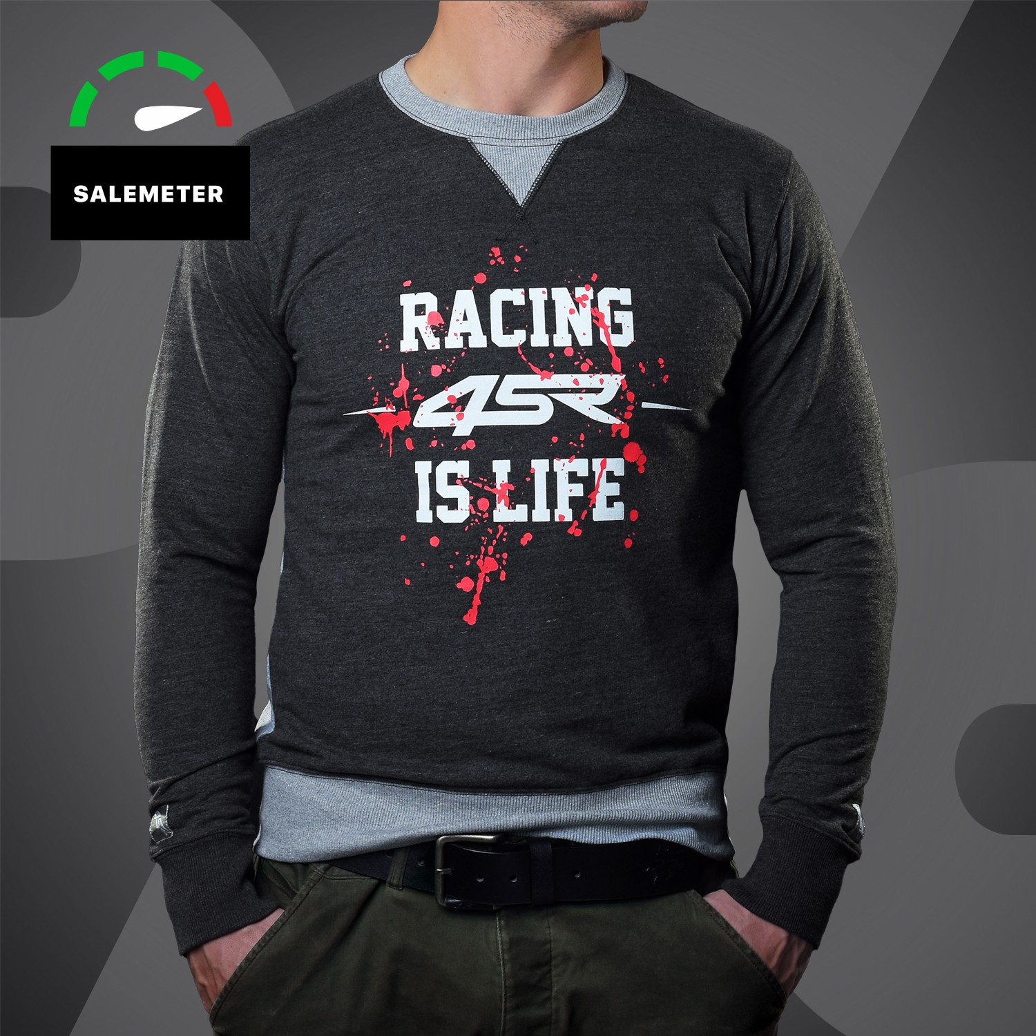 Racing is life! 4SR Sweatshirt Life Grey für Männer.