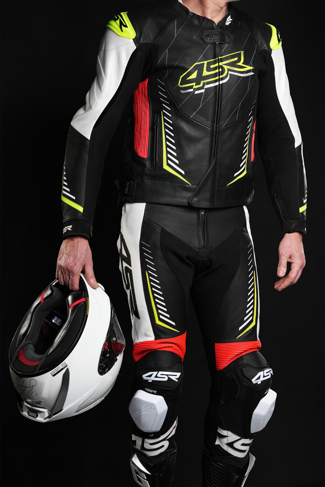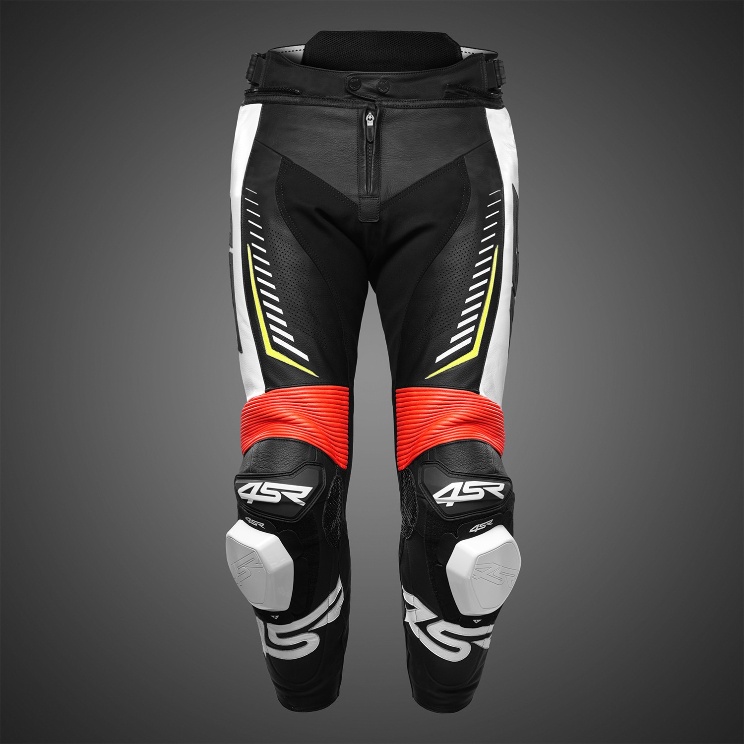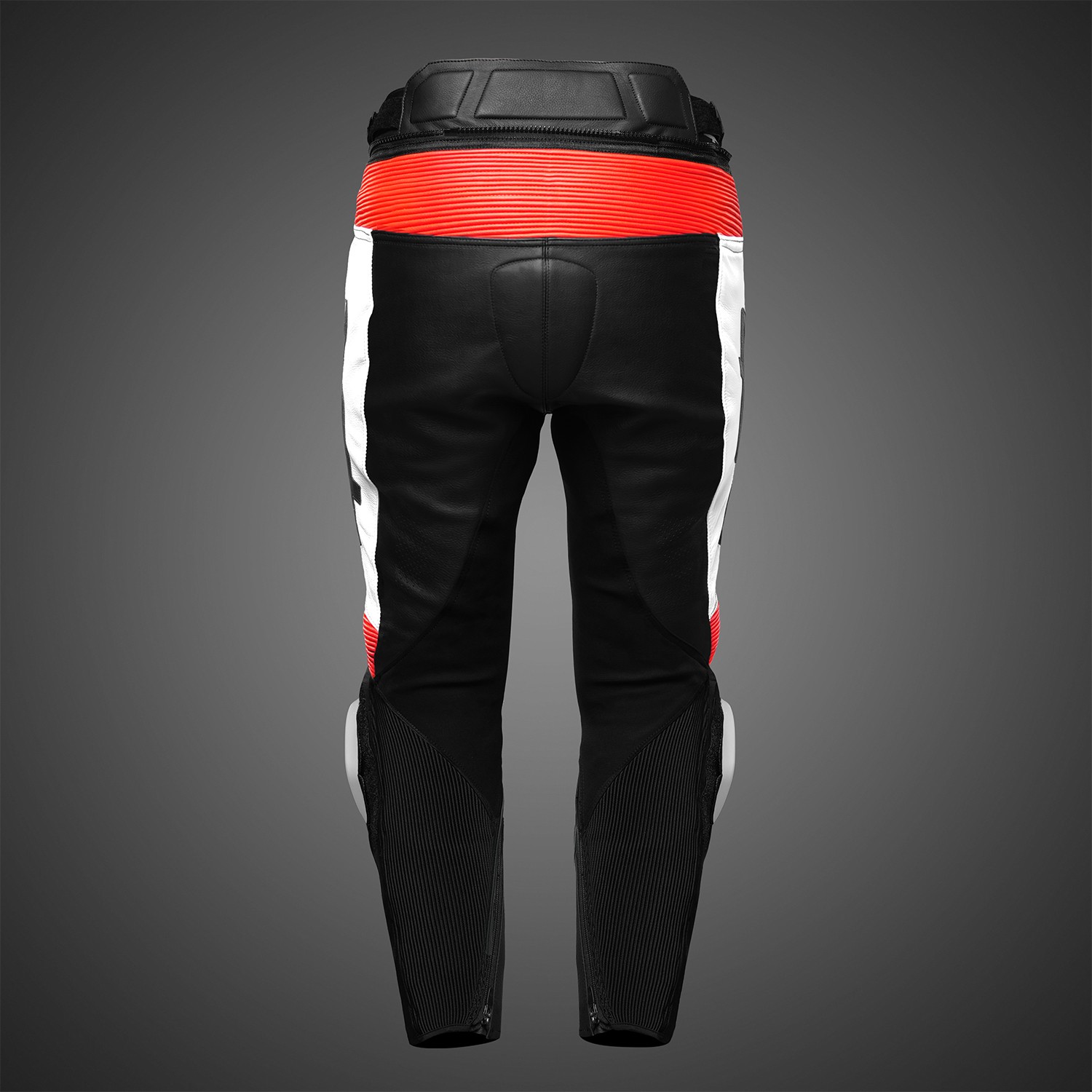 Sportliche Lederhose, die zusammen mit einer 4SR-Jacke eine perfekt abgestimmte zweiteilige Kombination bildet.
