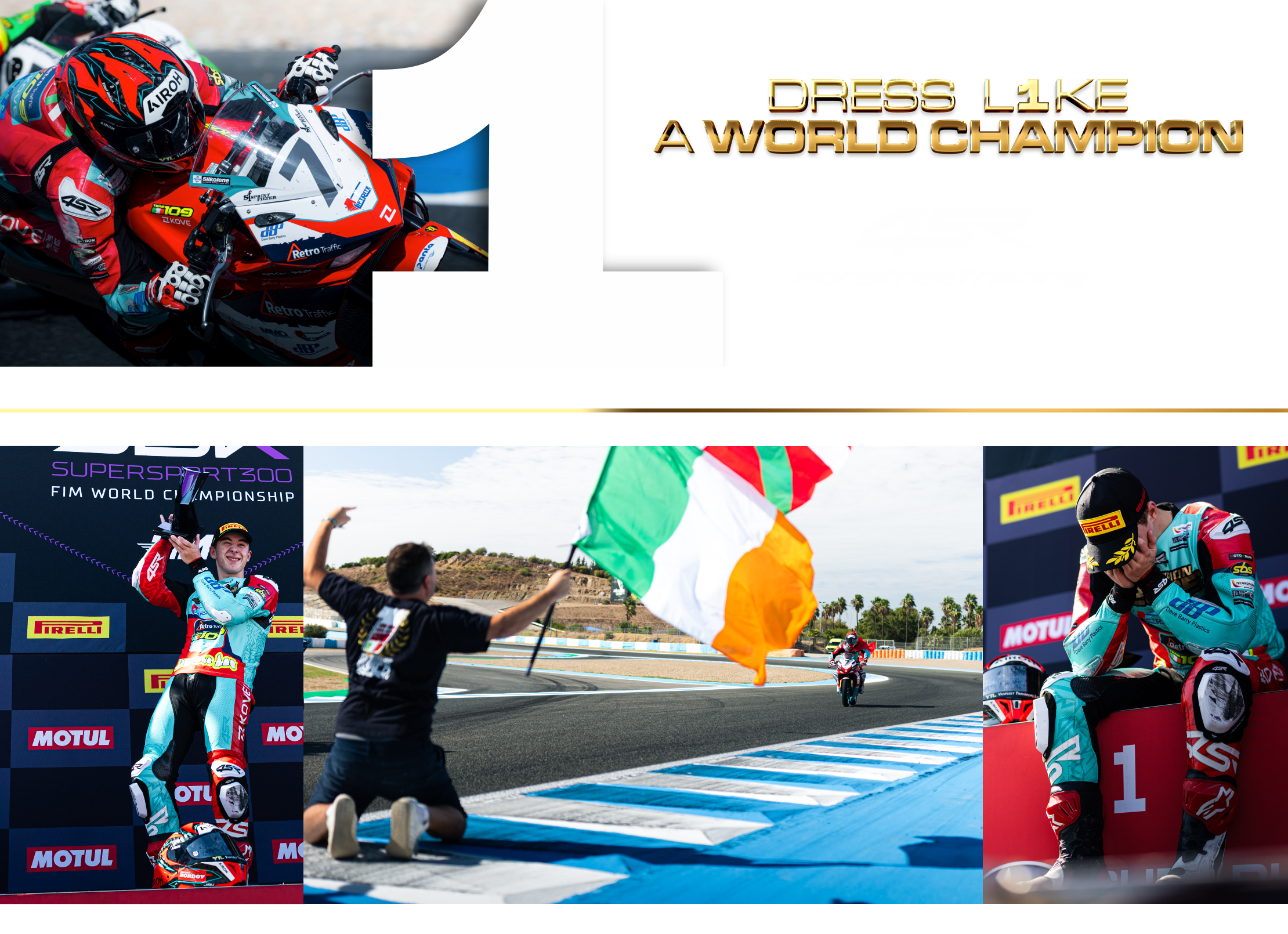 Im spanischen Jerez wurde Beñat Fernandez #7 vom Team #109 Retro Traffic Kove auf seiner KOVE-Maschine Weltmeister. Wer das Rennen gesehen hat, weiß, dass es ein Kampf bis auf den letzten Zentimeter war. Und die großartige Nachricht: Wir haben auch den Vize-Weltmeister in derselben Kategorie – Carter Thompson #50 vom Team MTM Kawasaki. Das kann kein Zufall sein! Herzlichen Glückwunsch an beide Fahrer!